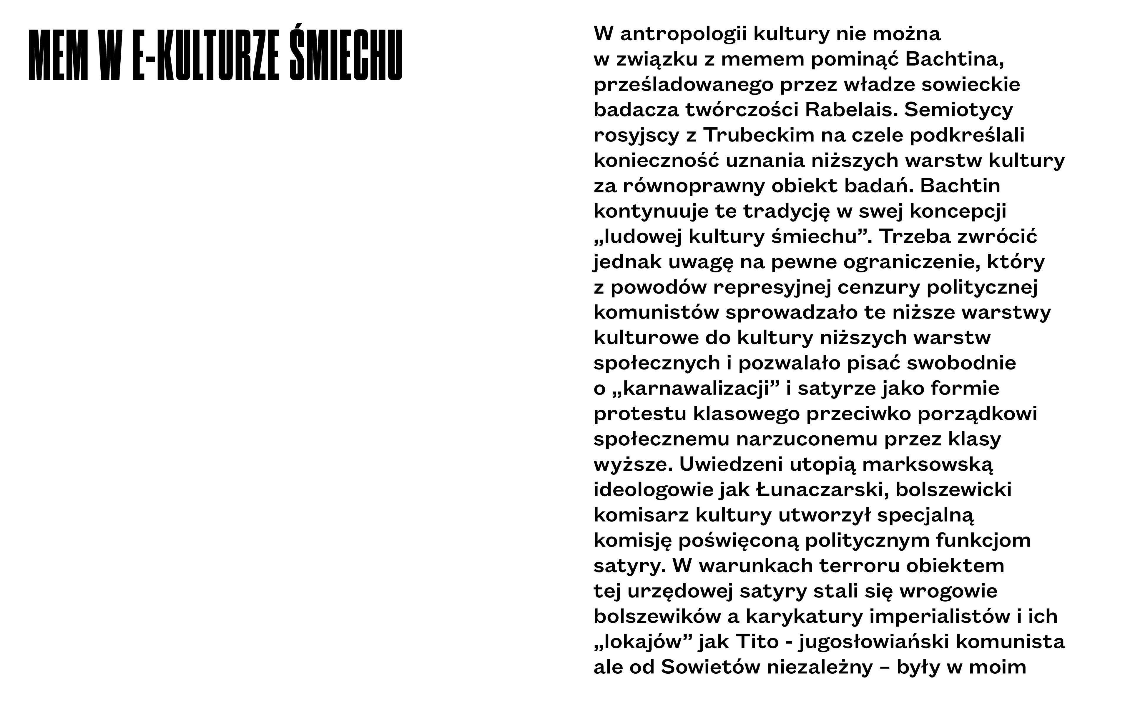 Wystawa jest próbą odpowiedzi na nasuwające się pytania: Czy memy mogą wpływać na wyniki wyborów parlamentarnych lub prezydenckich? Czy mogą być lepszym źródłem informacji niż media mainstreamowe? Czy mogą zrobić z nas antyszczepionkowców albo skłonić nas do działania? Czy mogą uratować świat przed katastrofą klimatyczną, zmniejszyć strach i apatię i czy mają w sobie leczniczą moc?